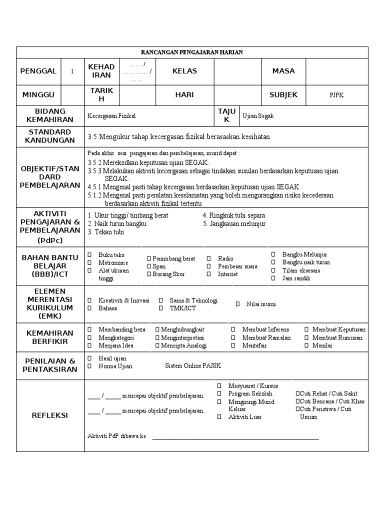 Kertas mahjong dan pen marker. KEMAHIRAN MENINGKATKAN KESIHATAN DOMAIN PSIKOMOTOR STANDARD KANDUNGAN STANDARD PEMBELAJARAN Pentaksiran Kecergasan Fizikal 35 Mengukur tahap kecergasan fizikal berasaskan kesihatan. View contoh rph kssm tingkatan 3 bahasa melayu as pdf for free.